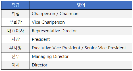 3. 직급 순서 영어로는?